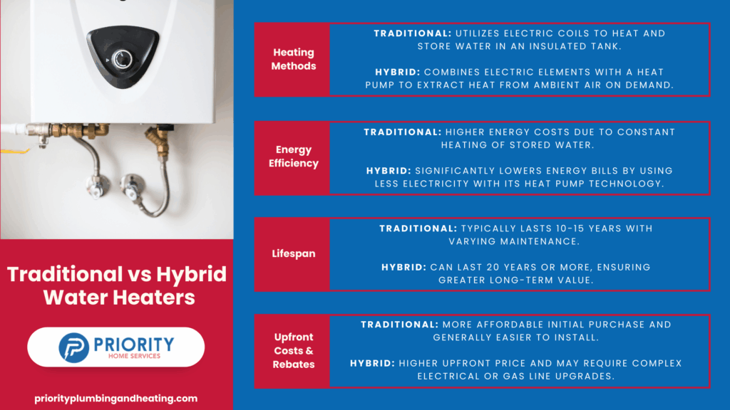 Choosing a new water heater can feel like a big decision. You want a system that’s reliable, efficient, and fits your family’s needs. The two main options are traditional tank water heaters and modern tankless models. As your local plumbers, Priority Home Services is here to break down the key differences to help you make an informed choice for your home and budget.